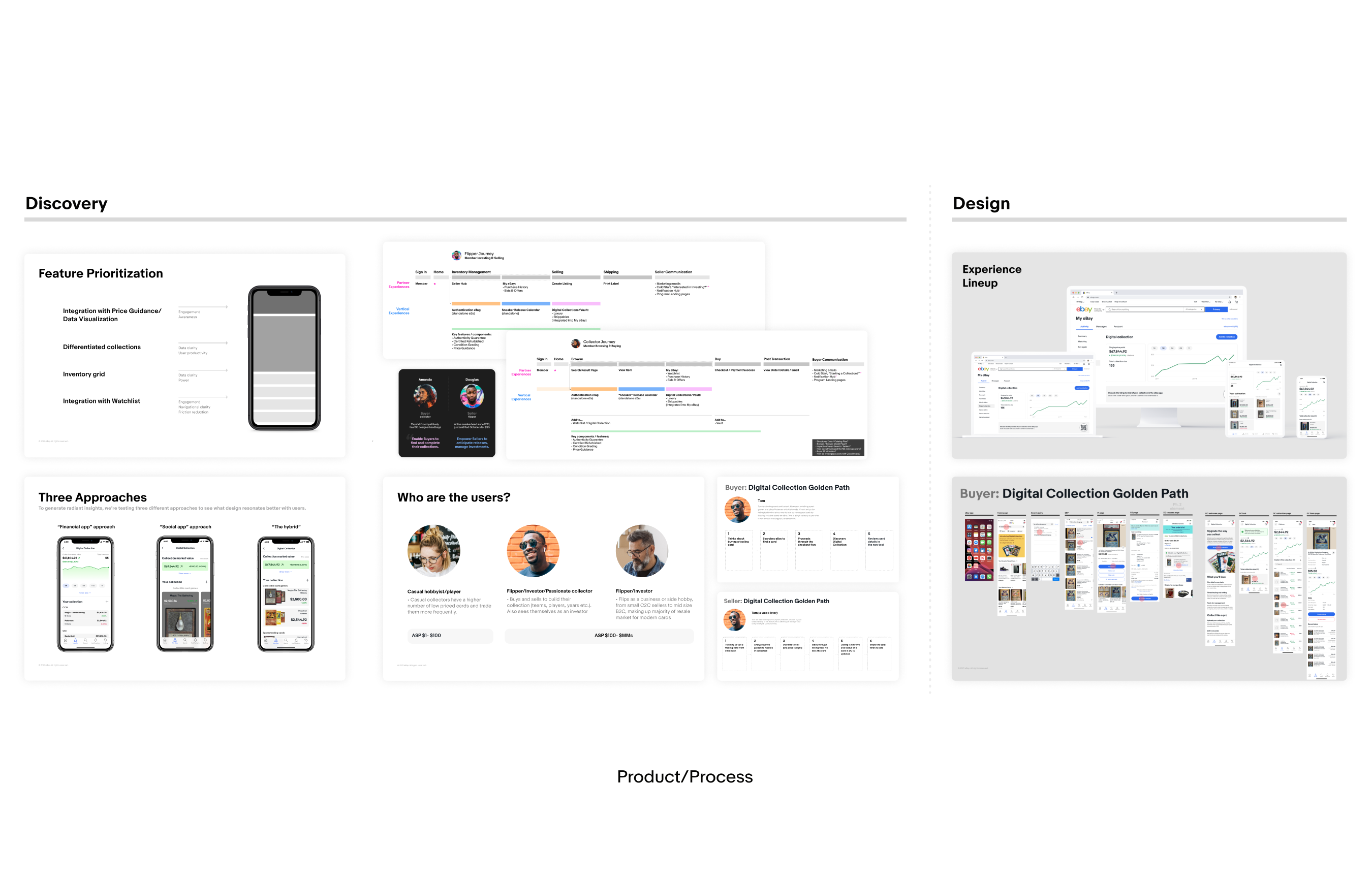 As our project grew, so did the scope to include new products: Price Guide and Collection Uploader Tool, displaying accurate pricing from past purchases and uploading collection data from spreadsheets, respectively. These projects supported Collection and I drove them in parallel.